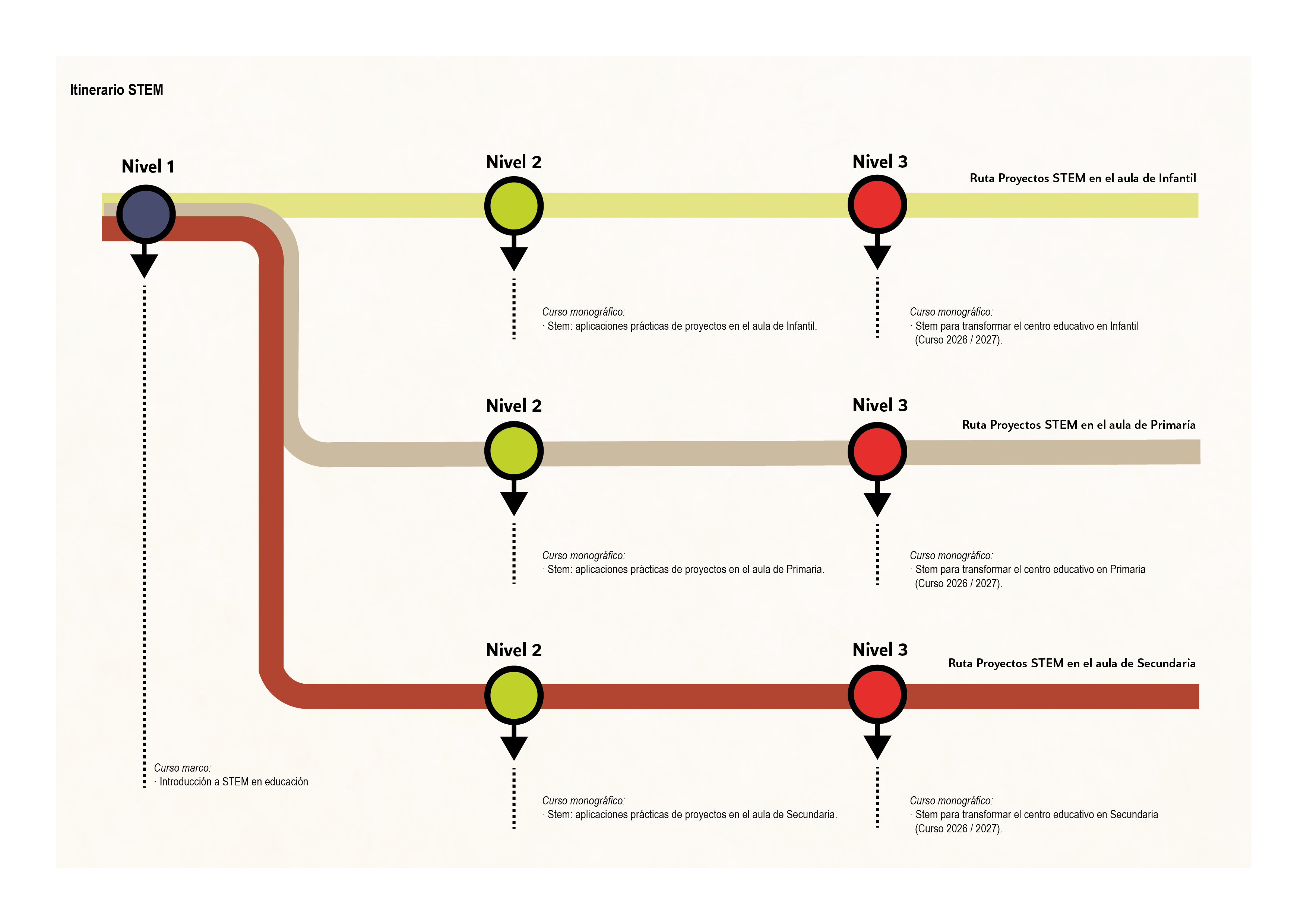 Este curso de “STEM: aplicaciones prácticas de proyectos en el aula de infantil. Nivel 2”, forma parte de la ruta 1.