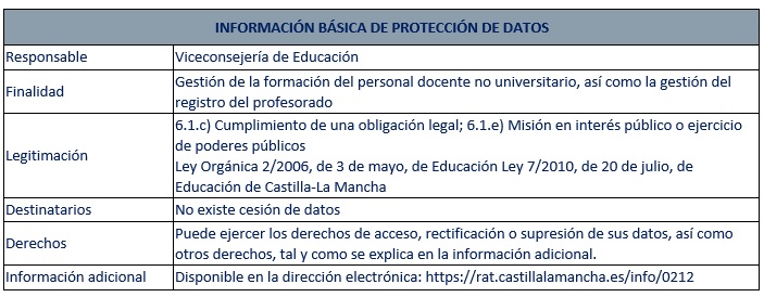Exclusivamente para docentes de FP de cualquier familia profesional que impartan docencia en centros y etapas sostenidas con fondos publicos de la administración autonómica en Castilla-La Mancha.