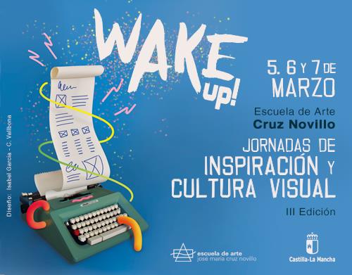 La tercera edición de las Jornadas de Inspiración y Cultura Visual Wake Up, organizadas por la Escuela de Arte Cruz Novillo de Cuenca, se desarrollarán los próximos 5, 6 y 7 de marzo y en ellas se celebrarán distintas actividades relacionadas con el diseño, la fotografía y el cómic, de entre las que destacan ponencias por las mañanas y talleres por las tardes, a cargo de especialistas relevantes en cada uno de sus campos.