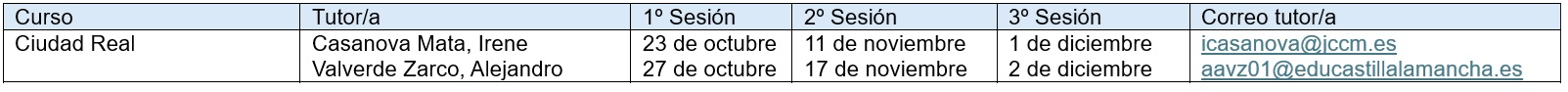 Para resolución de consultas individuales relacionadas con los contenidos o tarea del curso se tendrá que poner en contacto con su tutor/a.