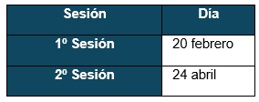 Las sesiones presenciales se celebrarán los siguientes días en el lugar que se detalla: