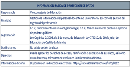 Para cualquier duda sobre esta actividad formativa, pueden dirigirse a la siguiente dirección de correo electrónico: desarrolloprofesional.crfp@jccm.es